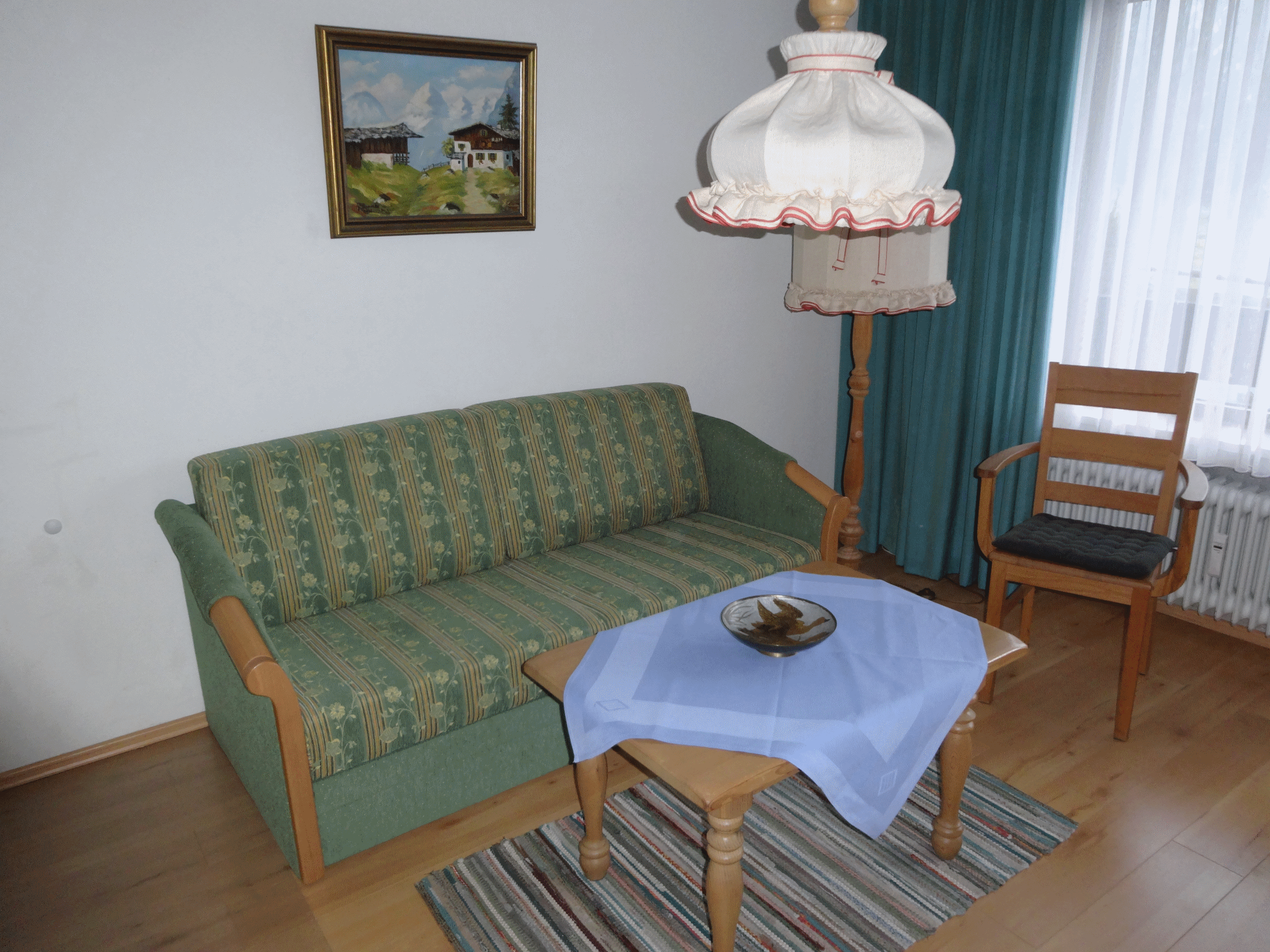 Die Zweiraumwohnung verfügt über einen Wohnraum mit Küchenzeile (inkl. Mikrowelle) und einer Schlafcouch, einem separaten Schlafzimmer, Diele, Dusche / WC, Waschmaschine, Trockner und Südbalkon mit herrlichem Ausblick auf das Zugspitzmassiv. Bettwäsche und Handtücher sind vorhanden. Unseren Gästen stehen das im Hause befindliche Hallenbad und die Sauna kostenfrei zur Verfügung.